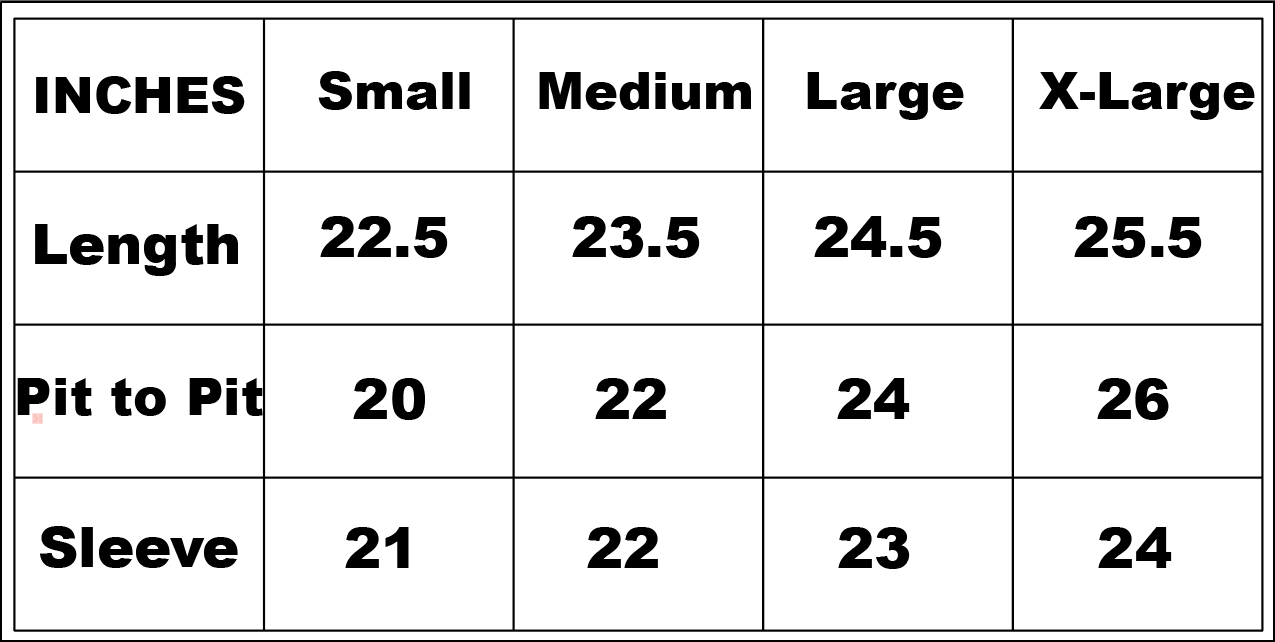 scroll down for size chart